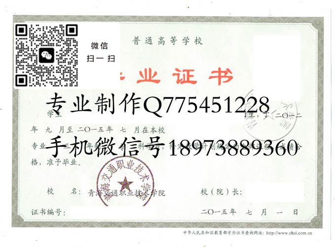 青海交通职业技术学院毕业证样本