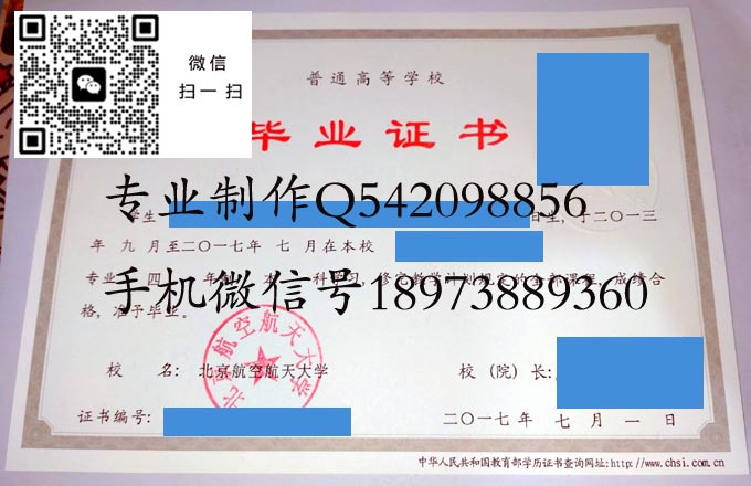 北京航空航天大学历届毕业证样本