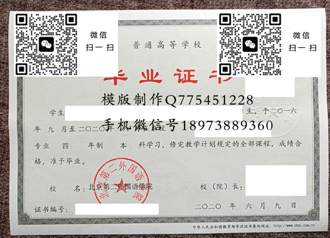 北京第二外国语学院历届毕业证样本全日制模版图片