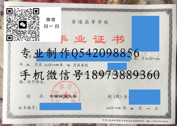 中国政法大学历届毕业证样本